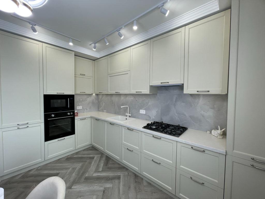 — Глянец визуально расширяет пространство, поэтому его часто выбирают для небольших кухонь. Но на тёмных фасадах сразу видны отпечатки пальцев и мелкие царапины. Мат выглядит спокойнее и благороднее, на нём меньше заметны повреждения. Однако есть нюанс: распространённое мнение, что soft-touch полностью скрывает следы рук, — это миф. На темных бархатистых фасадах отпечатки могут быть даже заметнее, чем на светлом глянце. Поэтому я всегда говорю: важно учитывать цвет, состав семьи и готовность к уходу. Для активной кухни практичнее светлый мат, текстуры или покрытия с эффектом антифингерпринт. А если говорить о долговечности, то решает не «мат или глянец», а качество материала и технология производства.