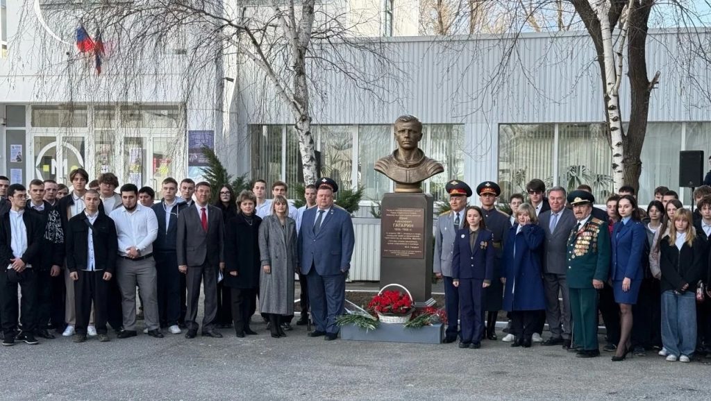 В начале 2025 года руководство и преподавательский состав колледжа приняли решение к 65-летнему юбилею восстановить историческую справедливость и установить бюст Первого космонавта планета Земля Героя Советского Союза Юрия Алексеевича Гагарина, на территории учебного заведения, с чем и обратились к Волгоградскому Региональному Отделению Всероссийского Детско-Юношеского Общественного Движения “Школа безопасности”, которое имеет многолетний опыт реализации подобных проектов. Автор и руководитель благотворительного Проекта “Аллея Российской Славы” Михаил Леонидович Сердюков выразил готовность передать в дар бюст героя. Не смотря на это и учебное заведение и “Школа безопасности” столкнулись с массой трудностей в реализации проекта. И только благодаря Временно исполняющего обязанности командира 20-ой Гвардейской Прикарпатско-Берлинской Краснознамённой Ордена Суворова Второй степени мотострелковой дивизии гвардии полковнику Евгению Владимировичу Степанову, который уделяет огромное внимание патриотическому воспитанию подрастающего поколения, 10 апреля 2026 года к дню празднования Дня космонавтики удалось завершить этот проект с проведением торжественного мероприятия. Но волнение не покидало участников проекта, потому что на дату проведения торжественного мероприятия метеорологи предупреждали о предстоящих обильных осадках. Сама природа отнеслась благосклонно к планам организаторов. Праздник состоялся при солнечной ясной погоде. Буквально по завершению мероприятия начался проливной дождь.