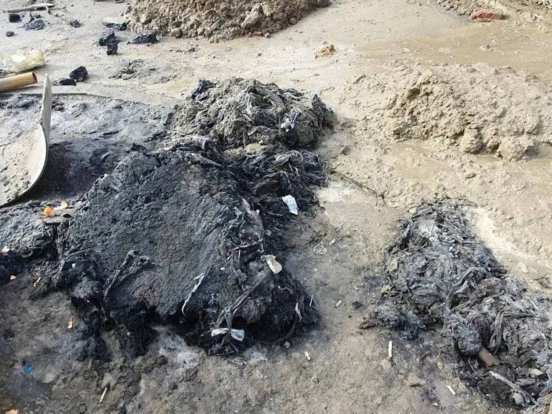 Поскольку промывка спецмашиной и механическое воздействие не помогли, было принято решение использовать самый действенный метод — вскрытие коллектора. Сотрудники компании вскрыли асфальтовое покрытие над проблемным участком и вырезали поврежденную часть трубы. Дальнейшая работа велась вручную: специалисты разобрали завал, состоящий из спрессованных отходов и тех самых злополучных покрышек.