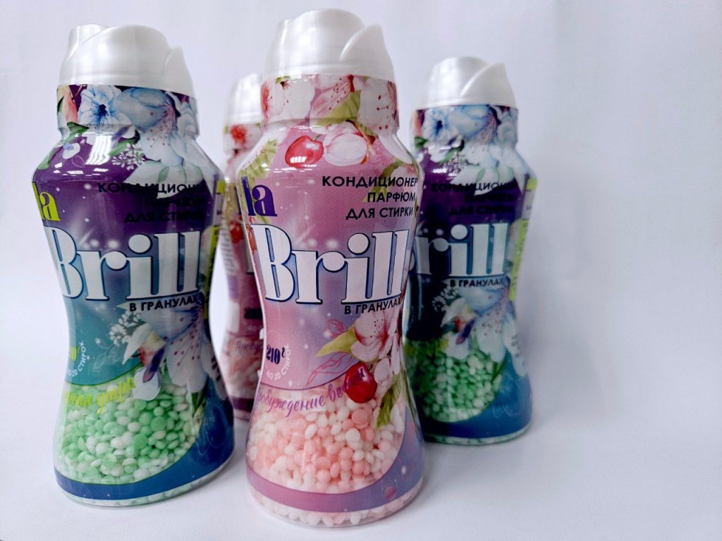 Линейка гранулированных кондиционеров включает несколько ароматов — «Пробуждение весны» (сакура) и «Энергия утра» (яблоко и зеленый чай). Небольшая упаковка объемом 210 грамм — это около 20 стирок.