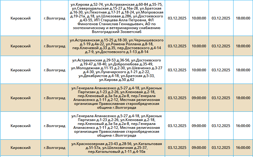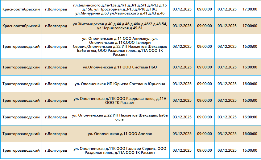 Сегодня, 3 декабря, в Тракторозаводском, Краснооктябрьском и Кировском районах Волгограда часть домов останутся на время без электроснабжения.