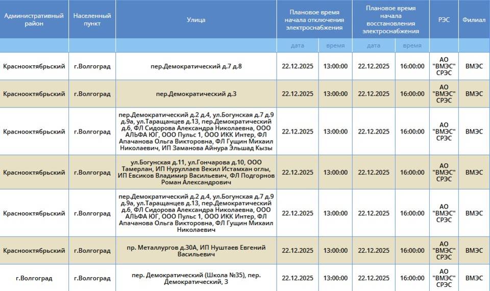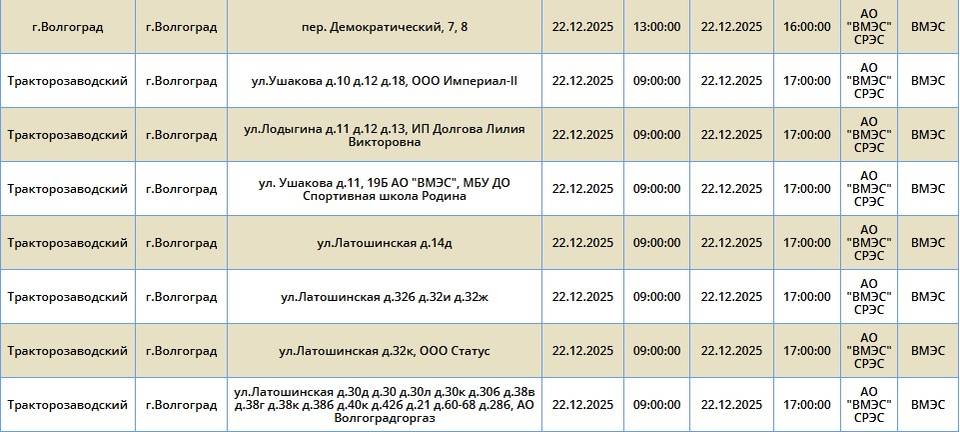 Рабочая неделя начинается в Волгограде с отключения света. Как сообщают «Россети-Юг», отключение электроэнергии на время произойдёт в Краснооктябрьском, Тракторозаводском, Ворошиловском и Советском районах.