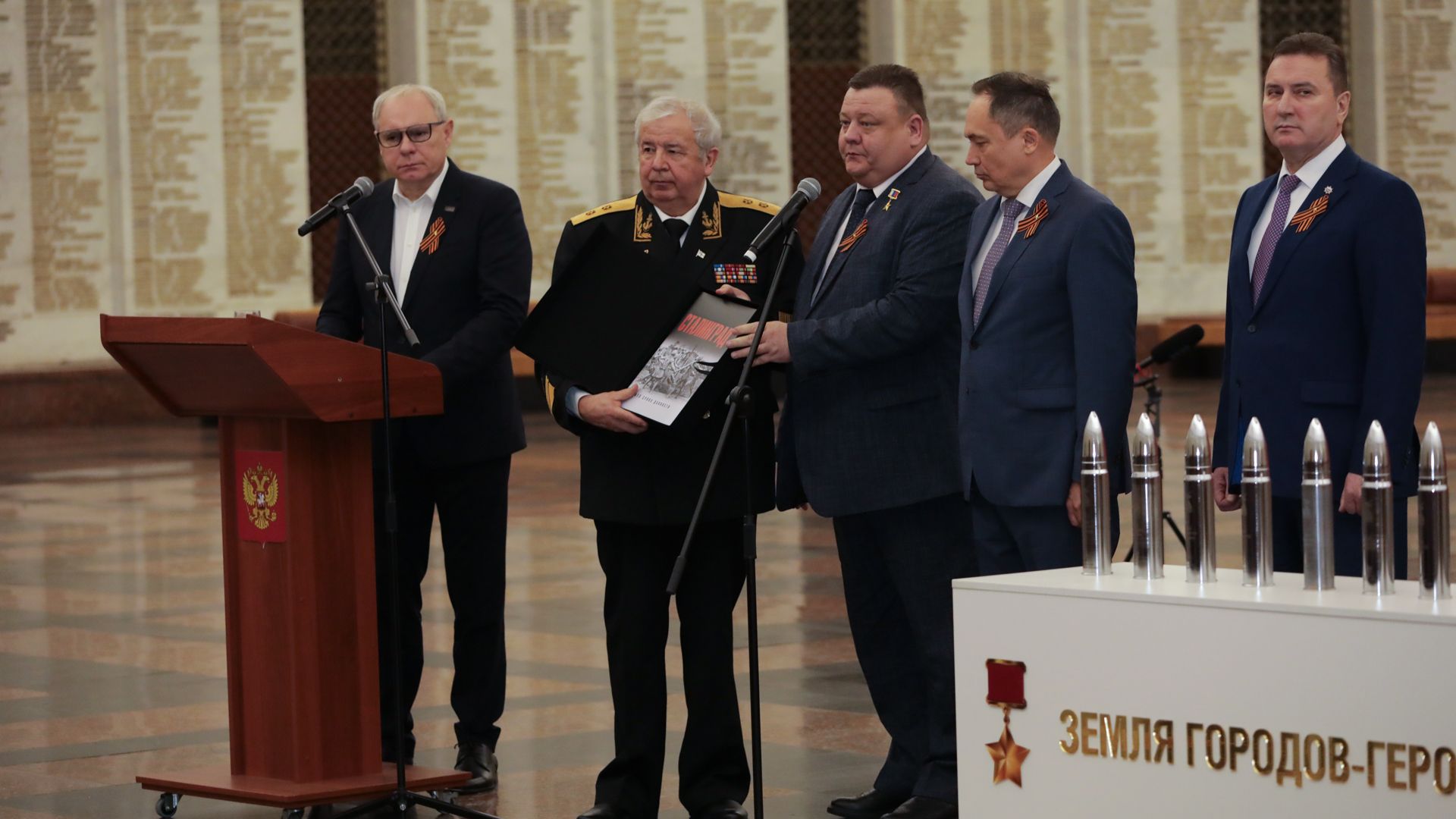 От Волгоградской области в церемонии принял участие депутат облдумы, генеральный директор ООО «Газпром трансгаз Волгоград» Юрий Марамыгин. Он передал музею капсулу с землей города-героя Волгограда.