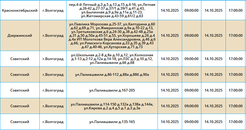 Во вторник, 14 октября, сразу в трёх районах Волгограда запланированы работы на электросетях. В связи с необходимостью профилактики, часть домов будет временно обесточена в Дзержинском, Советском и Краснооктябрьском районах.