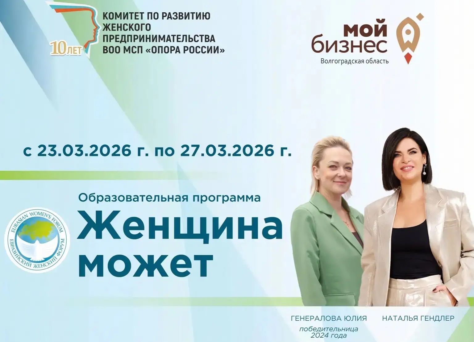 Проект направлен на формирование устойчивого женского предпринимательства, развитие деловой активности и поддержку экономической самостоятельности женщин. Реализуется при поддержке Евразийского женского форума и Совета Федерации РФ. Прием заявок на участие в образовательной программе открыт до 10 марта 2026 года. Для подачи заявки достаточно перейти по ссылке.